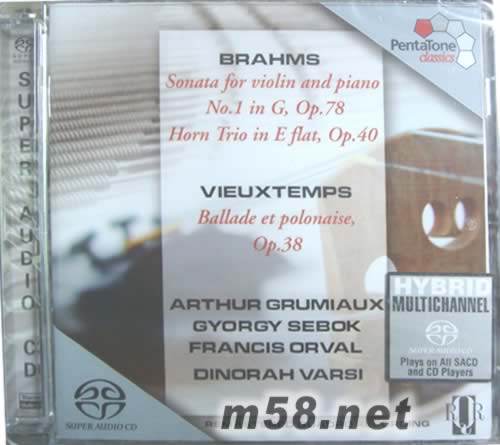 約翰內(nèi)斯.伯拉姆斯:第一號(hào)小提琴奏鳴曲和圓號(hào)三重奏 SACD(m58.net) ARTHUR GRUMIAUX – violin GYORGY SEBOK – piano FRANCIS ORVAL – horn DINORAH VARSI – piano (Vieuxtemps 作為以室內(nèi)樂聞名而著稱的伯拉姆斯來說,其寫作的細(xì)膩手法和多姿多彩的感情演繹是獨(dú)有的!要提及的是伯拉姆斯一生直到40歲才寫出了在其它作曲家涉足很早的小提琴奏鳴曲,所謂大器晚成。自然這部作品沒有因?yàn)樗某龅劳矶渌酥拢喾催@部小提琴奏鳴曲可謂是這種形式作品的經(jīng)典力作!美不勝收!而圓號(hào)三重奏更是伯拉姆斯擅長的作品,因?yàn)樗孕【拖矚g圓號(hào),所以在這種樂器上投入比較深,創(chuàng)作的曲目就更是唯美之極!格魯米歐演奏小提琴;西伯克鋼琴伴奏;歐里威圓號(hào)演奏。