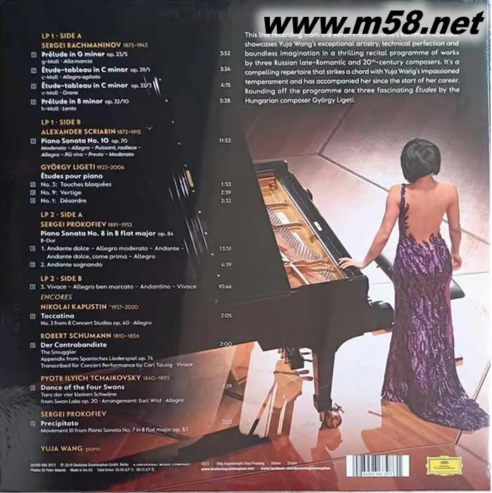 柏林獨奏會安可曲 THE Berlin Recital Extended 雙黑膠(DG唱片125周年紀念版)(m58.net) DG唱片125周年紀念版 2023年,德意志慶祝了一個精彩的里程碑:DG唱片125歲生日,為了紀念這一時刻,發行了12個LP,為期12個月的慶祝活動。 包括Danil Trifonov、Hélène Grimaud、Hilary Hahn、Jan Lisiecki和許多其他人的傳奇錄音。 王玉佳的個人獨奏專輯中充滿了俄羅斯浪漫主義和20世紀末永恒的微縮作品。Yuja Wang的音樂哲學既簡單又復雜。“我想把所有的生活都與音樂聯系起來,”她說。這位出生于北京的鋼琴家的專輯捕捉到了拉赫瑪尼諾夫、普羅科菲耶夫、斯克里亞賓和利蓋蒂的獨奏作品的白熱化,他們是俄羅斯人三人組,也是20世紀末最偉大的作曲家之一。尤賈在北美和歐洲進行了廣泛的個人巡演,柏林獨奏會在柏林愛樂樂團的Kammermusiksaal現場錄制。這張黑膠唱片還包括她一系列精彩的柏林安可曲,涵蓋了從尼古拉·卡普斯廷爵士風格的《托卡蒂納》的即興段和回旋曲,到厄爾·懷爾德對柴可夫斯基的《天鵝湖》中四重奏的鏗鏘轉錄。