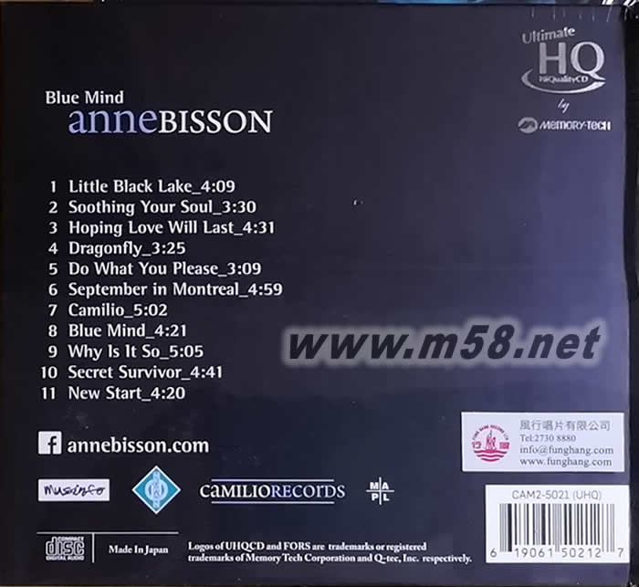 Blue Mind UHQCD(m58.net) 【高音質(zhì)表現(xiàn)UHQCD 復(fù)刻更完美細膩的效果】 【日本Memory Tech製造】 Anne Bison是近年流行、爵士樂界冒起的天后級發(fā)燒女歌手,專輯【Blue Mind 】Anne Bison身兼演唱及鋼琴手,其中 10 首歌由她創(chuàng)作,情感細膩的演唱中所散發(fā)的強大感染力,更能讓人一聽難忘。伴奏方面並與鼓手Paul Brochu和低音結(jié)他手 Normand Guilbault合作 。搭配雖然簡單,但格調(diào)清新怡人,聽來令人回味。在製作人Guy St. Onge 的指揮下,這張專輯已具備頂級杰出爵士經(jīng)典,更令人驚喜的是,連錄音也達到示范級水準(zhǔn)。首批限量珍藏版、附獨立編號。