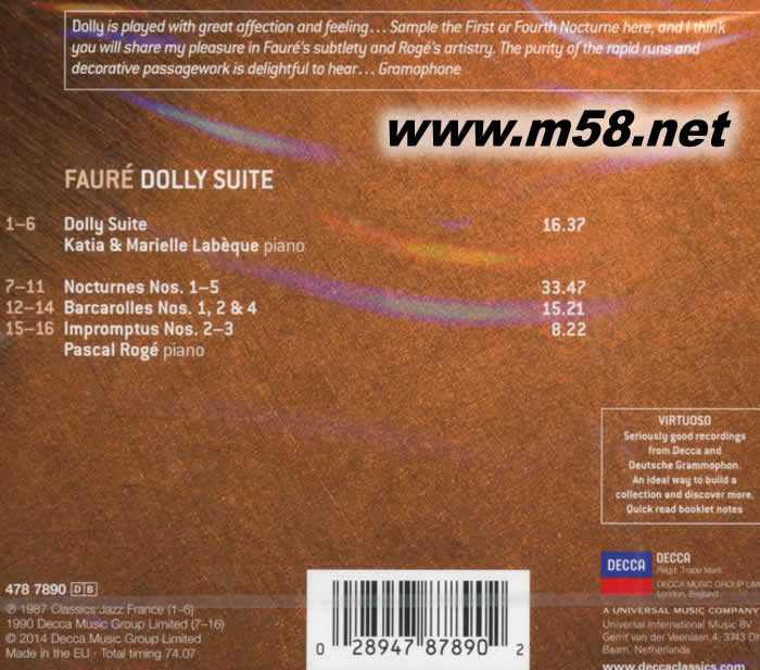 佛瑞 : 桃莉組曲、夜曲、船歌、即興曲 FAURE : DOLLY SUITE, NOCTURNES, BARCAROLLES, IMPROMPTUS VIRTUOSO大師系列專輯背面圖片