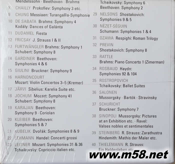 DG 111 – The Conductors 大指揮家錄音集(40CD大套裝)(m58.net) All the great conductors on Deutsche Grammophon from the 1930s to the 2000s in one essential box set • A 40-CD original-jacket collection • Several recordings are new to CD, or have their first international CD release • Iconic recordings alongside rarer gems • 112-page booklet with new liner notes by Julian Haylock • The ideal cornerstone for any library of orchestral music