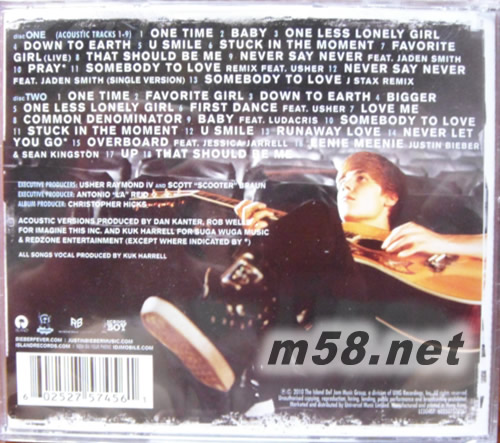 Disc: 1 1. One Time Acoustic 2. Baby Acoustic 3. One Less Lonely Girl Acoustic 4. Down To Earth Acoustic 5. U Smile Acoustic 6. Stuck In the Moment Acoustic 7. Favorite Girl Acoustic 8. That Should Be Me Acoustic 9. Never Say Never Acoustic 10. Pray 11. Somebody To Love Feat. Usher 12. Never Say Never feat. Jaden Smith 13. Somebody To Love J Stax Remix Disc: 2 1. One Time 2. Favorite Girl 3. Down To Earth 4. Bigger 5. One Less Lonely Girl 6. First Dance feat. Usher 7. Love Me 8. Common Denominator 9. Baby 10. Somebody To Love 11. Stuck In A Moment 12. U Smile 13. Runaway Love 14. Never Let You Go 15. Overboard 16. Eenie Meenie 17. Up 18. That Should Be Me