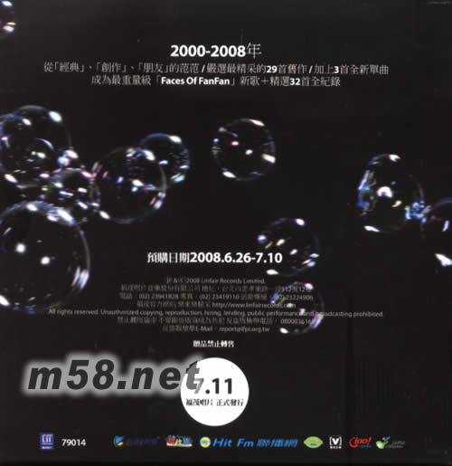 Faces Of FanFan(臺灣預購版)(m58.net) 獨家預購禮: FACES OF FANFAN 2000-2007年演唱會全紀錄30分鐘精華DVD 送完即止 7月1日前匯款的才有贈品。