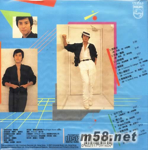 1、想將來 2、天邊一只雁 3、山野間情 4、情雨牽 5、我心喜歡你 6、尋樂真巖數 7、忘不了您 8、愛上您 9、不必伸手給我 10、愛意怎擋 11、小風波