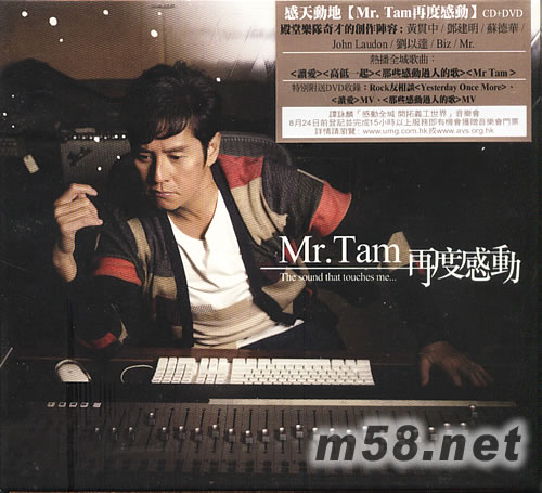 Mr Tam再度感動 (CD+DVD)(m58.net) 感天動地【Mr. Tam再度感動】 殿堂樂隊奇才的創作陣容 包括黃貫中、 鄧建明、蘇德華、John Laudon、 劉以達、Mr. 及Biz 熱播全城歌曲:<讀愛> 接力主打: <那些感動過人的歌> <高低一起> 特別附送DVD收錄: Rock友相談 、 <讀愛>MV、<那些感動過人的歌>MV 籌備經年,已有四年多沒有推出廣東唱片的譚詠麟,在2009年全新專輯《再度感動》中邀請 Beyond 成員黃貫中、太極鄧建明、Blue Jeans 蘇德華、City Beat 的 John Laudon、達明一派的劉以達、Mr.及Biz等一班樂隊好友為他作曲及監制。由劉諾生作曲的主打情歌「讀愛」,講述一個生死與共的愛情故事,歌詞感人至深,延續阿倫經典情歌的曲式,新曲讓樂迷想起「愛在深秋」與「愛的根源」的真摰回憶。 除了有劉諾生作曲的「讀愛」外,碟內收錄了蘇德華作曲的「那些感動過人的歌」,以及Mr.作曲并合唱的「Mr. Tam」,其他作品還包括∶黃貫中創作的「香港香港」、Joey Tang 的「高低一起」。譚校長希望憑新碟向年輕人推動 Band Sound,望十首新作發放正能量予樂迷。