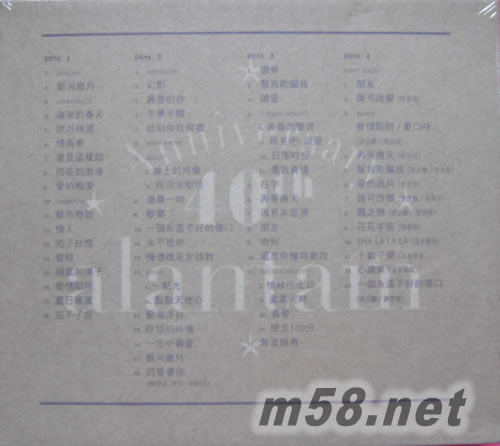 銀河歲月40載演唱會Live (4CD) (首批限制裝潢)(m58.net) 校長譚詠麟一連13場的《銀河歲月40載演唱會》,于2015年2月13日在香港紅館揭開序幕,紀念入行40周年。阿倫以一身閃爆白馬王子造型出場獻唱演唱會主題曲「銀河歲月」,繼續落力演出,獻唱金曲又唱又跳,邀得陳奕迅、李克勤、張學友、陳慧琳、溫拿樂隊等擔任嘉賓撐場,最后演唱一曲「無言感激」,感謝歌迷們的支持。 《銀河歲月40載演唱會》以Live 4CD發行,CD#1-3收錄超過200分鐘60首經典金曲,CD#4(Bonus Disc)特別收錄:多位嘉賓不同場次現場演唱珍貴版本。 此為首批限制裝潢,熨金字封面貴胄級限量制作。 譚詠麟.銀河歲月40載演唱會Live 4CD 「連場爆滿」演唱會4CD收錄超過200分鐘 / 60首經典金曲「最強紀錄」Disc4 (Bonus Disc)特別收錄:多位嘉賓不同場次現場演唱珍貴版本 張學友、陳慧嫻、李克勤、陳奕迅、陳慧琳、溫拿樂隊 及 關楚耀 聲效靚絕.熨金字封面貴胄級制作.隆重面世.限定數量發行