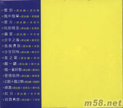 01. 暫別 -譚詠麟 雷安娜 02. 風中勁草 -譚詠麟 蔡國權 03. 愛火 -譚詠麟 張淑玲 04. 玩的格言 -譚詠麟 彭健新 05. 偏愛 -譚詠麟 早見優 06. 分手之后 -譚詠麟 鄺美云 07. 我做得到 -譚詠麟 成龍 08. 分甘同味 -譚詠麟 陳百祥 09. 星之歌 -譚詠麟 黎明 10. 醒一醒 -譚詠麟 鄭中基 11. 唱一首好歌 -譚詠麟 關淑怡 12. 愛情陷阱 -譚詠麟 陳曉東 13. 幻影+霧之戀 -譚詠麟 張國榮 14. 感激 -譚詠麟 張學友 鄭中基 15. 紅日 -譚詠麟 李克勤 16. 自選角度 -譚詠麟 丁菲飛