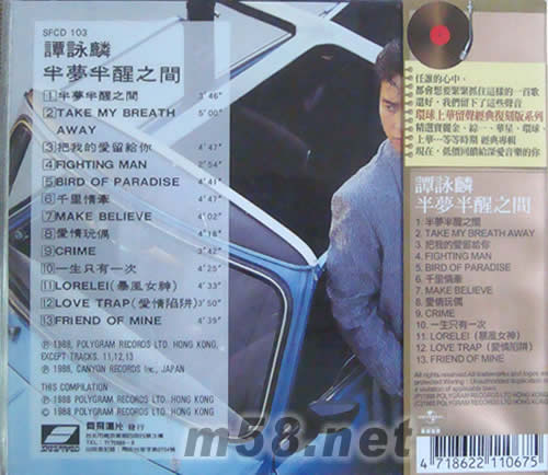 1、半夢半醒之間 2、TAKE MY BREATH AWAY 3、把我的愛留給你 4、FIGHTING MAN 5、BIRD OF PARADISE 6、千里情牽 7、MAKE BELIEVE 8、愛情玩偶 9、CRIME 10、一生只有一次 11、LORELEI(暴風女神) 12、LOVE TRAP(愛情陷井) 13、FRIEND OF MINE