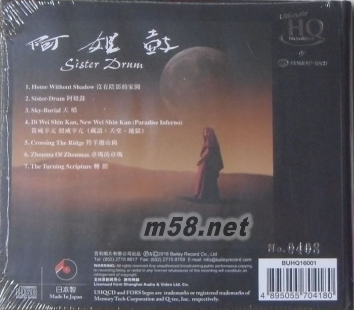 阿姐鼓 UHQCD限量版(m58.net) 于HQCD誕生6年后,日本MEMORY TECH成功應(yīng)用新材質(zhì)和開發(fā)嶄新制碟技術(shù),研發(fā)出最新高品質(zhì)CD-ULTIMATE HQCD(UHQCD).UHQCD完全顛覆傳統(tǒng)CD制程,印制出精確“數(shù)據(jù)坑”,還原出最接近母帶的音質(zhì),音效直逼玻璃CD,全程日本制造。