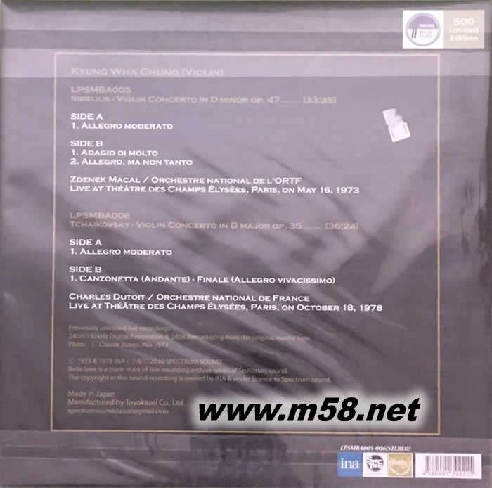 Sibelius & Tchaikovsky Violin Concertos in The Theatre des Champs-Elysees 1973 & 1978 雙黑膠專輯背面圖片