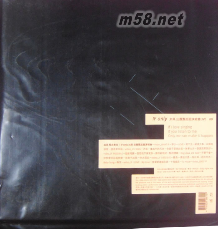 IF ONLY 如果 田馥甄巡迴演唱會BD 限量版(m58.net) 出版日期、價格為估,以到貨為準 2010年9月,S.H.E.成員之一Hebe,以田馥甄的本名,以“超級新人”的姿態發行第一張個人專輯,勇闖歌壇。而后她又接連發行三張專輯《To Hebe》、《My Love》、《渺小》,創下許多音樂記錄,熱門K歌《還是要幸福》使田馥甄成為YouTube上第一位點擊量破1千萬的華人女歌手,接下來的《寂寞寂寞就好》、《你就不要想起我》以及《魔鬼中的天使》也成為膾炙人口的熱門單曲。現場演出方面,田馥甄也交出了《330音樂田》、《Love! To Hebe音樂會》、《To My Love 慶功音樂會》、《渺小微巡》等超過28場的音樂會演出,在兩岸三地和東南亞刮起了一陣清新甜美的小旋風。 過去幾年里,田馥甄憑借個人魅力和極美的嗓音,從臺北一路唱到馬來西亞,從香港唱到新加坡,從北京唱到廣州、上海,創下了一場場票房秒殺的紀錄,數十萬名現場觀眾見證了田馥甄令人激賞的音樂實力與品味,眾多歌迷為之瘋狂! 此次華研音樂再次使用高科技打造《如果》巡迴演唱會,把極光從冰島帶進演唱會現場,開場田馥甄化身極光女神之姿,臥倒在巨大的冰山裡唱出「渺小」,這件重達10公斤價值40萬的冰塊裝融入舞臺冰山,由設計師手縫一個月完成,一路修改符合舞臺設計,堪稱是演唱會用最多布料的秀服! 除此之外,演唱會還有很多意外的驚喜和精心設計的環節,讓所有在場觀眾都為之震撼與狂熱。 演唱會取名《如果》意思是希望擁有很多的可能性與可塑性,田馥甄道:“其實是有一點自我探索的意思,歡迎大家進場一起來探索我,也探索自己。”田馥甄個性低調,被形容是“離島之外的冰島,冰島之外的安全島,穿上白色大蓬裙是冰山,其實里面藏著一個暖爐!” 2015年11月21日,田馥甄準備了滿滿的能量和更多屬于自己的金曲,這一次,她將來到美麗的山城重慶,駕臨重慶國際博覽中心,帶來全新主題“如果”演唱會,與歌迷再續田式情歌!