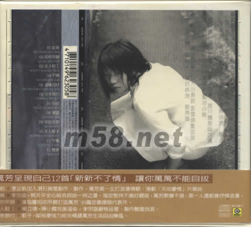 價(jià)格為估,以實(shí)到貨為準(zhǔn)! 萬芳不換(臺灣限量版)(m58.net) 你我之間一輩子不換的萬有引力 人前是萬芳 現(xiàn)在是萬芳 未來還是萬芳 李宗盛 李正帆 吳旭文 黃建昌 超級四大制作魅力聯(lián)手 不換萬芳情歌如假包換 1999再譜抒情浪漫史詩 特別收錄:[從前]1999新新不了情 萬人迷惘KTV傳唱首選 經(jīng)典音樂愛情故事[從前]MUSIC VIDEO 完整版VCD 萬芳呈現(xiàn)自己12首[新新不了情]讓你萬萬不能自拔 從前*李正帆加入滾石首度創(chuàng)作、制作,萬芳第一主打浪漫情歌。港劇[天地豪情]片尾曲 不換*李宗盛+熊天平全心組合詞曲一時(shí)之選,指定堅(jiān)持不換好聽版,萬芳歌聲不換,第一人選都會抒情浪漫。 如你所愿*潘協(xié)慶如你所愿打造萬芳 99鐵定最哽咽代表作。 女人鞋I*楊立德+陳小霞完美渲染,李宗盛嚴(yán)格品管、制作醒愛良言。 分手旅行*郭子+鄔??祻?qiáng)力組合精鑄萬芳生活自由樂風(fēng)。