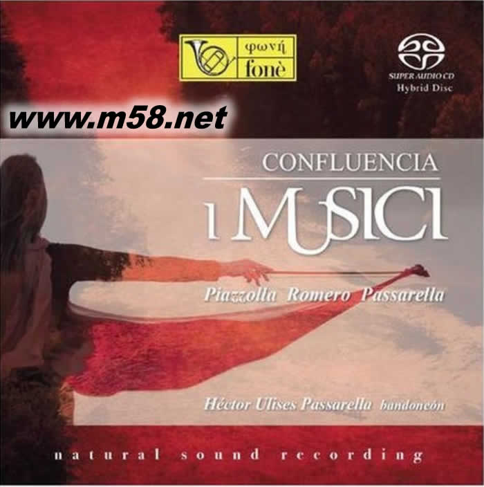 Confleuncia 意大利音樂家合奏團(tuán)[接連] SACD(m58.net) 1. 譽(yù)滿全球室樂團(tuán)「意大利音樂家合奏團(tuán)」自六十週年紀(jì)念特輯 「維瓦爾迪:四季」后另一新作。 2. 樸質(zhì)音色錄音系列 (natural sound recording) – 以現(xiàn)場實(shí)況收錄,不作后期修改調(diào)教,音色自然。 3. 演奏拉丁裔著名作曲家阿斯特‧皮亞佐拉(Astor Piazzolla), 阿迪馬羅·羅梅羅(Aldemaro Romero)及 赫克托‧烏利塞斯‧帕薩雷拉( Héctor Ulises Passarella)的精彩作品。