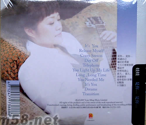 價格為估,以實到貨為準! 是你……是你(m58.net) 睽違已久大家熟悉的朋友“娃娃”金智娟再度出輯了,她是這樣的隨性,依然自我。她以不變的唱法,不變的歌聲唱出這全新的歌曲。 此張專輯特別之處是后三首是以純音樂 (薩克斯風演奏) 詮釋,有別于以往的專輯請大家試目以待。