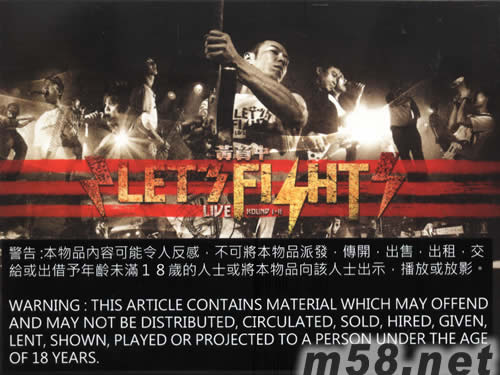 Let's Fight Live(m58.net) 由黃貫中發(fā)起,5月在九龍灣展貿(mào)Star Hall舉行兩場香港最強(qiáng)搖滾樂音樂會《Let's Fight》,集合了城中獨立樂團(tuán)包括秋紅樂隊、Audiotraffic、24 味、Family、Dear Jance、Kinglychee、Sonic Temple,以及眾歌手好友何超、劉以達(dá)、許懷欣等等,齊在舞臺上jam歌大唱rock n'roll。這張CD+DVD《Let's Fight Live》除了找到由Paul創(chuàng)作、群星大合唱的主題曲「Let's Fight」外,還有眾樂團(tuán)及歌手的代表作,包括∶24 味「24味」、黃貫中「人間蒸發(fā)」、許懷欣「嚇大」、何超「小腿太肥」、Audiotraffic「Happy」、葉世榮主唱Beyond名曲「海闊天空」等共35首作品。 由于《Let's Fight Live》音樂會口碑載道,Paul決定將于2008年6月30日舉行第三回《Let's Fight Live Round III》。