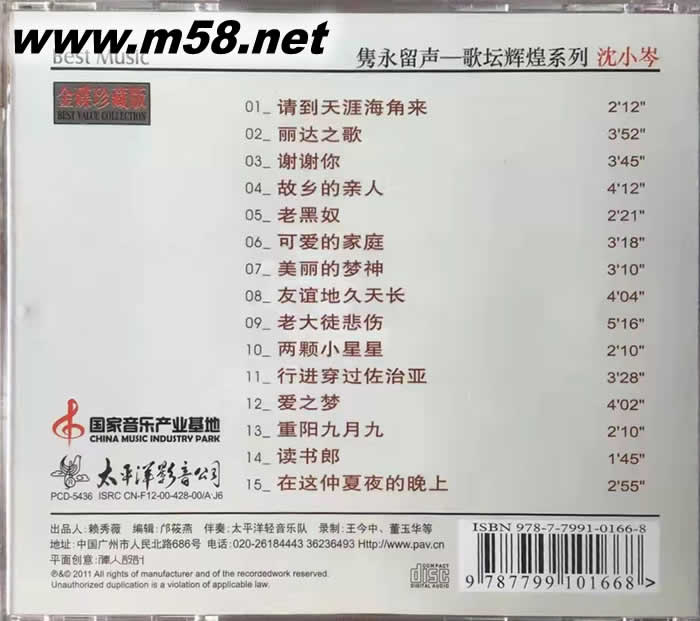 請到天涯海角來 麗達之歌 謝謝你 故鄉(xiāng)的親人 老黑奴 可愛的家庭 美麗的夢神 友誼地久天長 老大徒悲傷 兩顆小星星 行進穿過佐治亞 愛之夢 重陽九月九 讀書郎 在這仲夏夜的晚上