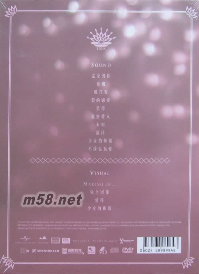 CD 01. 完全因你 02. 夜機 03. 風花雪 04. 假的戀愛 05. 值得 06. 親密愛人 07. 未知 08. 滴汗 09. 少女的祈禱 10. 不舍也為愛 DVD 01. Making of... 02. 完全因你 03. 值得 04. 少女的祈禱