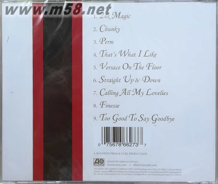 1-24K Magic 2-Chuncky 3-Perm 4-That's what I like 5-Versace on the floor 6-Straight up & down 7-Calling all my lovelies 8-Finesse 9-Too good to say goodbye