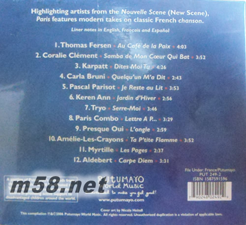 Putumayo Presents: paris 巴黎 美版專輯背面圖片