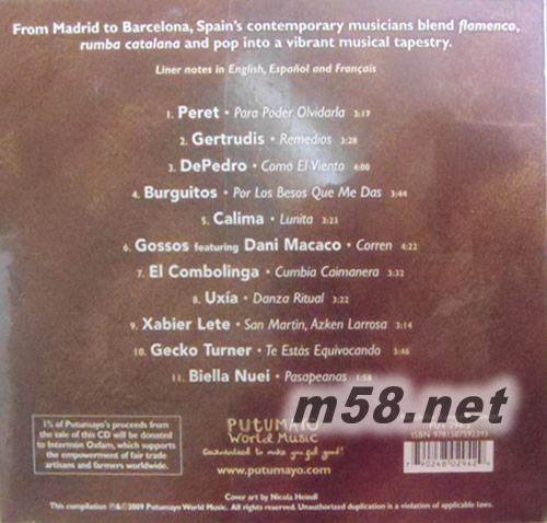 時尚西班牙 Espana(m58.net) 有佛朗明哥的狂野、有加泰隆尼亞民謠的典雅、有拉丁的熱情收錄當今最時尚的Mestizo混搭樂風代表作 西班牙是歐洲面積相當大的國家,在十六十七世紀時也是主要開啟殖民時期的國家,全盛時期在全世界都有殖民地,也因為如此,西班牙的種族及族群的組成相當復雜且多樣化,如果再把吉普賽人及猶太人的遷徙算進去的話,那還真是讓人眼花撩亂,不過也因為多種文化的融合與衝擊,使今日的西班牙充滿大量且豐沛的活力,西班牙的音樂大致可以簡單的區分為幾大塊,大家最熟悉的佛朗明哥主要活躍在南部安達魯西亞地區,西北部的蓋里西亞地區主要的音樂型態是克爾特,東南部沿海地區則是加泰隆尼亞民謠,在西部與法國交界處則是目前最熱情的Rumba Flamanco的區域。Rumba Flamanco這種音樂融合了古巴的Rumba節奏與Flamenco的元素而成,主要使用的樂器是西班牙吉他,而且通常是兩把以上同時彈奏,再加上熱力十足的Rumba節奏,從上個世紀七十年代末期出現后,很快的便延燒開來,九十年代初期率先由Gypsy King把這種樂風帶到全世界。面對這么多元的音樂元素,新生代的西班牙藝人及團體並不會一味的遵循原有規則前進,他們開始把所有的元素混合在一起,再加入許多時尚現代及流行的元素以及創意之后,發展出一種全新的音樂型態,名稱叫作Mestizo,字面上就是混合的意思,擺脫這些規則之后的西班牙藝人開始大量創作這些Mestizo的作品,時尚又迷人的色彩,再次掀起了全球樂迷的追逐風潮,Mestizo,無法用任何一種樂風來定位,自由自在且隨性,就是現代的主流調調,這張主題選輯精選了當今最時尚的西班牙Mestizo代表作,有佛朗明哥的狂野、有加泰隆尼亞民謠的典雅、有拉丁的熱情,更多的是時尚的質感。