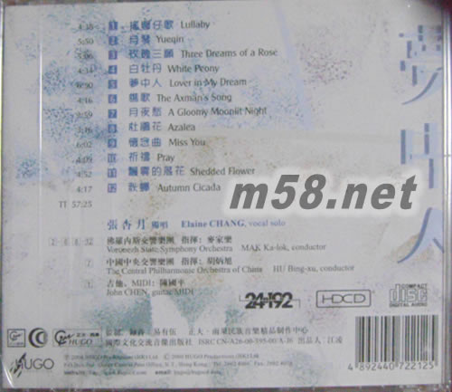 1 搖嬰仔歌 (4'38'') 2 月琴 (5'50'') 3 玫瑰三願(yuàn) (5'06'') 4 白牡丹 (4'34'') 5 夢(mèng)中人 (6'50'') 6 樵歌 (4'16'') 7 月夜愁 (2'59'') 8 杜鵑花 (3'16'') 9 懷念曲 (6'02'') 10 祈禱 (4'09'') 11 飄零的落花 (4'52'') 12 秋蟬 (4'17'')