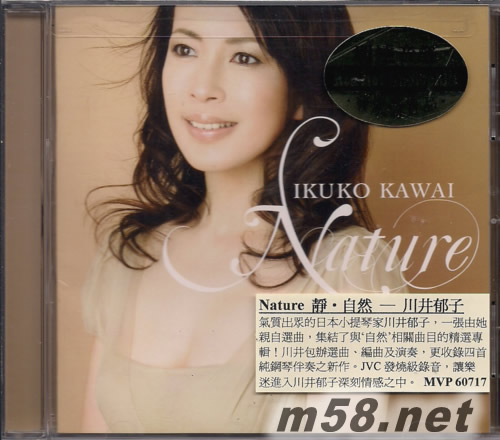 靜自然 NATURE(m58.net) 日本亞馬遜網站滿分推薦 ◎日本首席新氣質小提琴演奏家 古典跨界小提琴繆斯女神2009全新大碟 ◎全新錄音4首演奏曲 全新編寫新曲 柿樹催眠曲 ◎溫柔之中蘊含深刻情感,川井郁子〝靜〞的世界,這是一張由她親自選曲,集結了與〝自然〞相關曲目的最佳專輯! Ikuko Kawai川井郁子 令人驚艷無比的氣質出眾,散發潔靜、清澈、凈肌的完美具象的超級日系古典跨界小提琴演奏家-川井郁子。09年先行在臺灣以《繆斯女神.絕對精選The Violin Muse The Best of Ikuko Kawai》專輯迅速在發燒音響展與市場樹立絕贊好評。特以1715年製、大阪藝術大學所藏Antonio Stradivari小提琴演奏錄製首首迷難忘靚曲,呈現當代獨特的凈肌音樂氣息。這張於09年秋季完成的錄音大碟,川井身兼包辦音樂統籌、選曲、編曲及演奏,以靜。世界的自然哲學,轉折內化聆聽生命的音樂角度,希望樂迷一起進入她溫柔之中蘊含的深刻情感。專輯收錄9、11、14、15四首piano version新錄音與全新編寫的柿樹催眠曲。 川井郁子-日本香川縣高松市出生,Tokyo National University of Fine Arts and Music深造畢業,現任大阪藝術大學藝術學院教授,98年曾以東寶電影公司出品之《絆》一片榮獲「批評家大賞」新人獎/99年與日本偶像柏原祟主演電影《愛在天空的另一端》。集小提琴演奏藝術與作曲才華於一身,舞臺魅力融合古典/跨界/流行。曾與波蘭Warsaw Philharmonic Orchestra「華沙愛樂交響樂團」、New Japan Phihamonic Orchestra「新日本愛樂交響樂團」合作、藍調節奏歌手Sheila. E、王菲、Gypsy Kings等藝人同臺演出。美國華裔滑冰好手Michelle Kwan關穎珊以川井的“Red Violin”作為比賽演出配樂將川井的音樂推至一個世界級的高度。