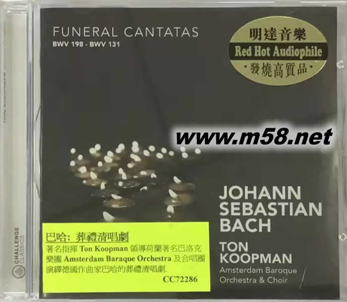 巴赫 葬禮清唱劇 FUNERAL CANTATAS BWV 198 BWV 131(m58.net) Challenge Classics 是荷蘭知名唱片品牌 - Challenge Records 旗下專注于古典音樂制作的子廠牌。 Challenge Records由Hein van de Geyn、Anne de Jong和Joost Leijen1994年成立于荷蘭阿默斯福特,是一家在專輯制作和營銷方面敢于創(chuàng)新進取的公司。他們的目標是為發(fā)燒友們提供質(zhì)量一流的專輯產(chǎn)品。在他們的網(wǎng)站上,音樂愛好者們可以找到關(guān)于藝術(shù)家、新上專輯的等信息的介紹。 多年來,Challenge Records一直致力于制作、營銷荷蘭國內(nèi)外的藝術(shù)家們所演奏的高品質(zhì)的音樂。作為一家獨立的公司,他們主要發(fā)行爵士樂和古典音樂,但是世界音樂、布魯斯、靈魂樂和流行樂等音樂風(fēng)格也在其經(jīng)營范圍之內(nèi)。除了Challenge自己的廠牌,他們也負責(zé)德國廠牌ECM在荷蘭市場的銷售工作,以及如Intuition、ACT、Caprice、Chesky Records、Stunt Records、Skip Records和Storyville等其他眾多廠牌的發(fā)行工作。 今日的Challenge Records對于未來的發(fā)展充滿信心。不論是藝術(shù)家水平和他們所錄制的音樂的質(zhì)量,還是在各領(lǐng)域都盡職盡責(zé)、熱情奉獻的專業(yè)團隊,Challenge Records在各個方面都代表著最高水準。