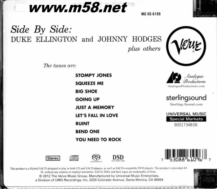Duke Ellington and Johnny Hodges - Side By Side SACD專輯背面圖片