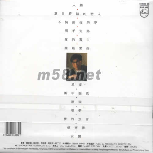 01. 人墻 02. 夏日終結的戀人 03. 不裝飾你的夢 04. 用手走路 05. 愛的獨白 06. 誰最愛你 07. 星夜 08. 風中暖流 09. 原因 10. 堆夢 11. 夢的預言 12. 燃亮我 13. 友情