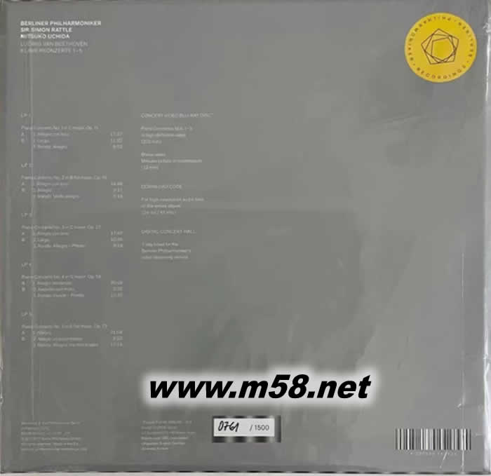 貝多芬:鋼琴協(xié)奏曲全集 BEETHOVEN KLAVIERKONZERTE 1-5 5黑膠套裝(m58.net) ,西蒙拉特指揮/柏林愛(ài)樂(lè)樂(lè)團(tuán),全雙5黑膠加一藍(lán)光碟現(xiàn)加全高清高檔下載再加7天網(wǎng)上觀看柏林愛(ài)樂(lè)。全球限量1500套,編號(hào)版。
