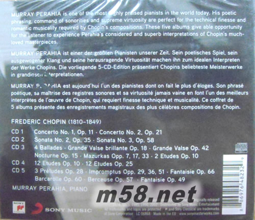 Perahia Plays Chopin普萊亞彈奏蕭邦作品集(5CD套裝)專輯背面圖片