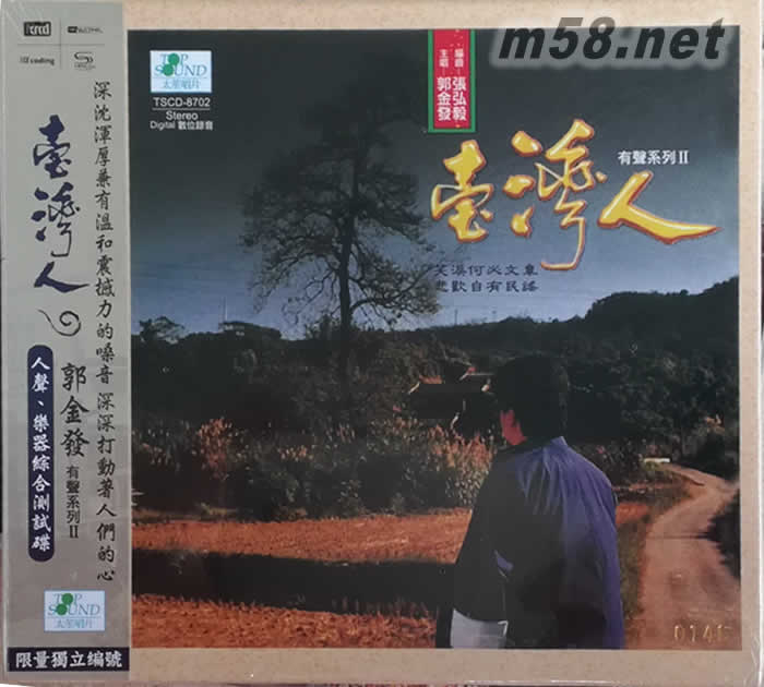 終極版音效擬真 / 獨立編號限量1000張 珍藏版 『人聲、樂器綜合測試碟』 這張專輯所以會入榜音響論壇 劉漢盛總編 100榜單, 不只是郭金發的歌聲,還有張弘毅的編曲及王基光的錄音也是不可或缺的因素 郭金發的低音厚實飽滿自然,每一首歌曲中,都會有低頻的震撼力,那震撼力不僅低沉且溫和,這是非常迷人的特質。回味鄉土親切的臺灣民謠亦回味人們心中的稻香味。 唱片的人聲、錄音、編曲俱佳,被譽為『人聲、樂器綜合測試碟』。 以高規格XRCD呈現, 新發售!!