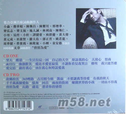 情傷情深歲月集 [絕版](m58.net) 集合亞洲首度席人創(chuàng)作人 小蟲,鄭華娟,陳煥川,邢增華,梁弘志,梁文福,施人誠(chéng),林利南,陳煥仁,小寒,易齊,小軒,譚健常,庾澄慶,黃大煒,黃元成,巫啟賢,邰正宵,姚若龍,周華健,曹俊鴻,林隆,小剛,童安格,等創(chuàng)作同時(shí)收錄文章詞曲創(chuàng)作"曾經(jīng)為愛"