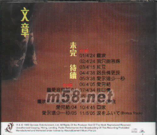 音碟 01. 塵埃 02. 我只能答應 03. 紅豆 04. 路長情更長 05. 愛永遠少一秒 06. 愛完結 07. 往日情 08. 領悟 09. 他不愛我 10. 回家 11. Bonus Track 影碟 01. 塵埃音樂版 02. 紅豆 03. 塵埃紅色劇場版 04. 愛完結 05. 愛永遠少一秒