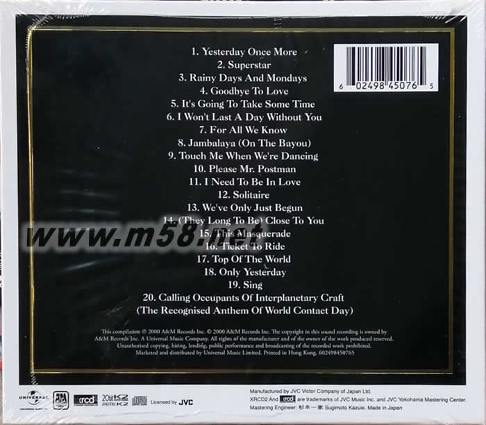 卡朋特金選 GOLD GREATEST HITS XRCD專輯背面圖片
