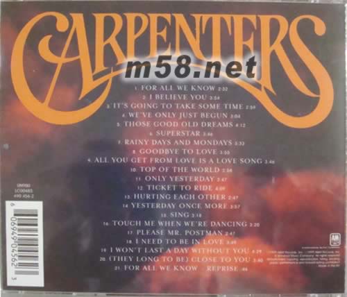 1. For All We Know 2. I Believe You 3. It's Going to Take Some Time 4. We've Only Just Begun 5. Those Good Old Dreams 6. Superstar 7. Rainy Days and Mondays 8. Goodbye to Love 9. All You Get From Love Is a Love Song 10. Top of the World 11. Only Yesterday 12. Ticket to Ride 13. Hurting Each Other 14. Yesterday Once More 15. Sing 16. Touch Me When We're Dancing 17. Please Mr. Postman 18. I Need to Be in Love 19. I Won't Last a Day Without You 20. (They Long to Be) Close to You 21. For All We Know (Reprise)