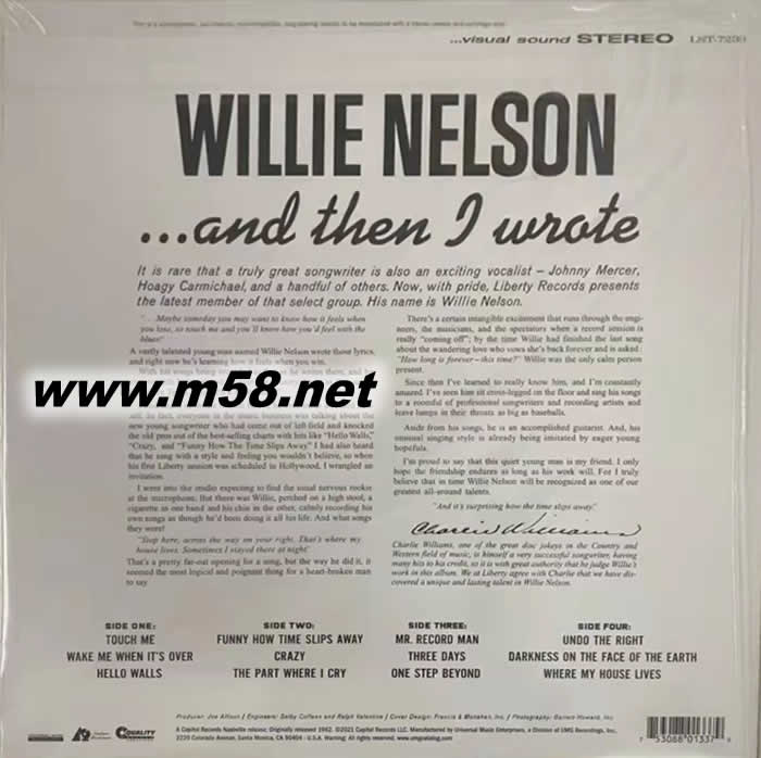 美國著名鄉村搖滾人物 Willie Nelson’s iconic 1962 debut album! Now a 45 RPM 黑膠(m58.net)
