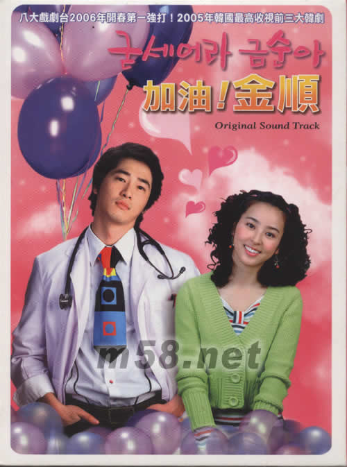 榮登2005年韓國最高收視排行前三大韓劇,并掀起全韓一陣[金順效應(yīng)]潮流的MBC韓劇--[加油!金順],以最高40.1%的高收視率而廣受到劇迷的喜愛。[加油!金順]由目前韓國影視圈最受矚目的演員韓惠珍、江志煥搭檔演出。劇情描寫個性開朗活潑,隨和又懂事的主人翁:金順(韓惠珍飾演)年幼失親,從小由奶奶撫養(yǎng)長大,但無論環(huán)境多么困難,生活中遇到多大挫折,她總是能夠以樂觀堅強的態(tài)度勇敢面對,鼓勵人們熱愛生活,在遇到困難、處處碰壁時,更該為了夢想不向命運低頭。