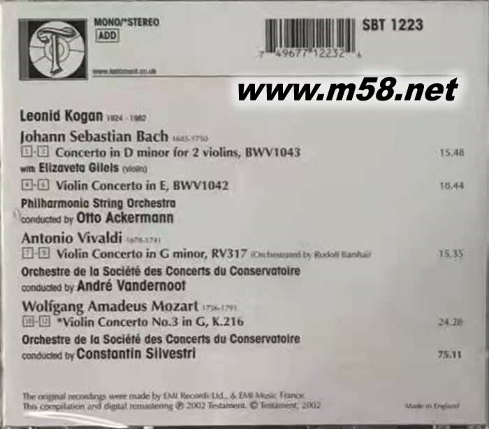 BACH VIVALDI MOZART 小提琴協奏曲(m58.net) 俄羅斯小提琴大師傳世名版 夫妻黃金組合,默契十足;絕對珍藏 英國原裝進口; EMI原廠音源精心轉製