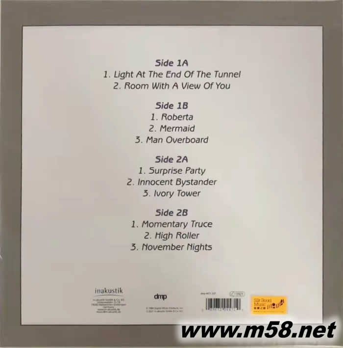 隧道Tunnel 爵士四重奏(貝斯、鼓、鋼琴、木管)黑膠(m58.net) Jimmy Johnson (nicknamed "Flim"), 5-string bass 低音貝斯 Bill Berg (drum & percussion鼓與打擊樂) Billy Barber(piano, keyboard &synthesize鋼琴、鍵盤與合成) Dick Oatts (woodwind木管樂) 1. 由五弦低音結(jié)他手,綽號"弗連"的吉米‧約翰遜(Jimmy Johnson, nicknamed "Flim")的別名和鼓手比爾‧伯格(Bill Berg)及琴鍵手比利‧巴伯Billy Barber)姓氏的頭一個字母"B"所組成的「弗連與BB樂隊(Flim & The BB's)」與著名發(fā)燒品牌「DMP」(Digital Music Products, Inc.)於1983年錄製的第一張專輯《三輪車(Tricycle)》獲得空前成功,成為爵士樂迷和「發(fā)燒友」的鑑賞和鑑聽必備之選。隨后樂隊迅即製作第二張專輯《隧道(Tunnel)》,表現(xiàn)與成績與《三輪車》不遑多讓,更榮獲《「光碟評論音樂雜誌」- 1984年度爵士樂最佳鐳射光碟專輯」奬(「CD Review」- Jazz CD of the Year)》,成績蜚然。 2. 樂隊各成員擁有高超的演奏技術(shù)毋庸置疑,這次繼續(xù)與著名木管樂樂手迪克‧奧特斯(Dick Oatts)合作(奧特斯隨后亦成為樂隊的固定成員),他盡顯橫溢的音樂才華,分別以中音薩克斯管、長笛、電鋼琴、單簧管、高音薩克斯管、短笛及次中音薩克斯管合力吹奏專輯內(nèi)每一首歌曲,他杰出吹奏技巧除了凸顯每一吹管樂器的特色外,更能與樂隊如魚得水,天衣無縫般地融合。 3. 專輯內(nèi)的歌曲被視為融合爵士樂(fusion jazz)標(biāo)誌性的作品,這樂種所應(yīng)有的元素包括內(nèi)藴的動力,有令人感覺游閒休悠,開懷愉悅的旋律,平和順滑的節(jié)奏和鬆弛愜意的氣氛在樂曲中可全面地體驗得到,加上採用當(dāng)時最先進的數(shù)碼錄音器材和技術(shù)製作,無論是音樂性的表達,錄音效果的表現(xiàn)皆是上乘之作,備受各界擊節(jié)讚賞。 4. 專輯內(nèi)的樂曲仍然充滿為人津津樂道和讃嘆不已的電子合成器配合上各種樂器的演奏,起伏有致,動態(tài)豐盈,音像飽滿清晰,音質(zhì)厚實,線條分明,將美樂以驚人的真實度呈現(xiàn)。現(xiàn)將原裝母盤採用最新技術(shù)加以改良和調(diào)整,並以UHQCD為載體,塑造出更理想、更純凈的音色和音效。示范級的演奏,典藏級的錄音,盡展從容優(yōu)雅的融合爵士樂的魅力。