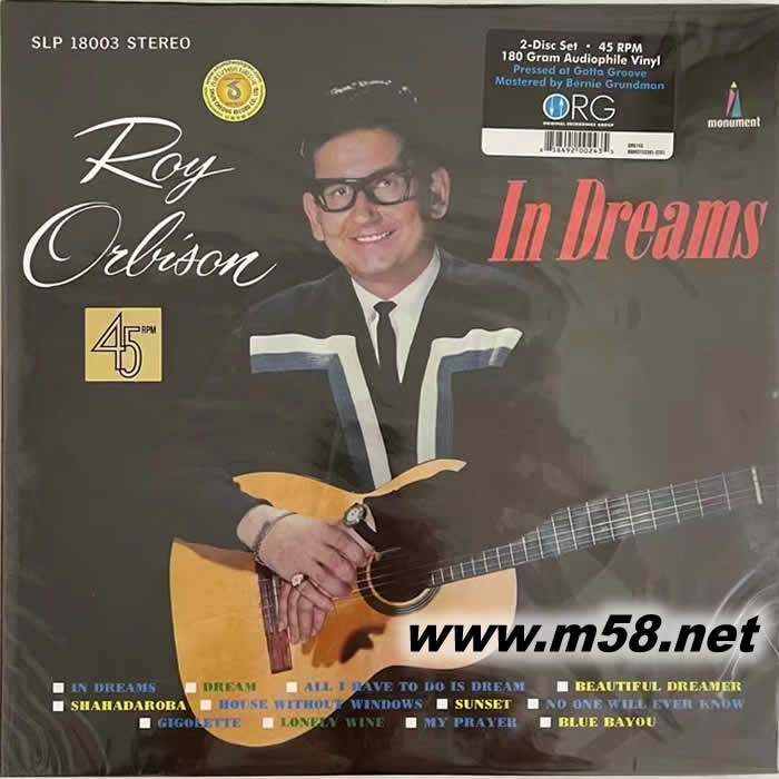 在夢里 IN DREAMS (鄉村) 180g 33RPM LP 黑膠(m58.net) 2LP 45轉,入選滾石雜志的所有時代偉大的100名藝術家名單中。羅伊·奧比森將鄉村流行音樂元素與搖擺樂結合,以其溫柔顫抖的嗓音,緩緩唱出浪漫愛情的共鳴。45轉雙黑膠,限量編號版。