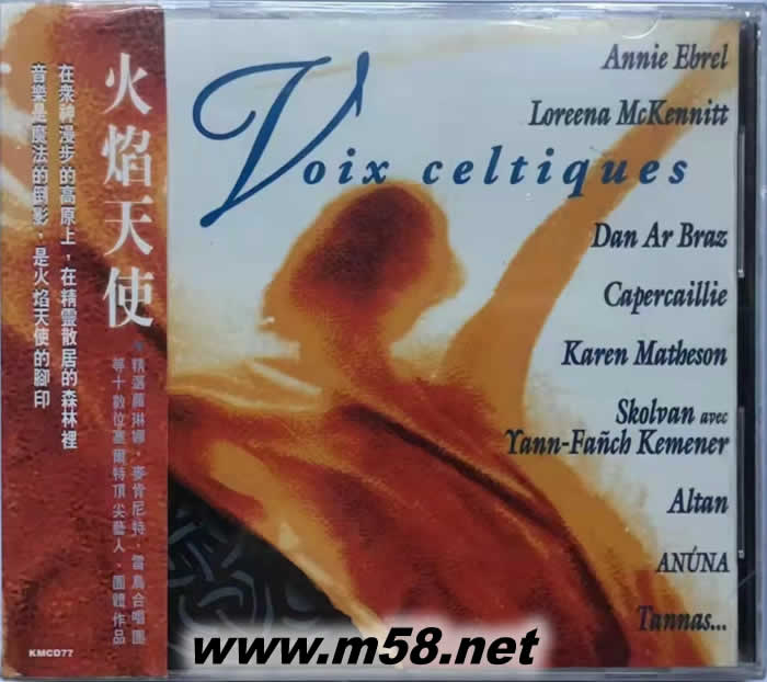 火焰天使 Voix Celtiques (歐洲民謠)(m58.net) 克爾特音樂的迷人,不僅是如女歌手恩雅的空靈優(yōu)美,或者是長笛手詹姆斯高威的輕盈愉悅,克爾特音樂的迷人,正是在於音樂中濃厚的敘事性及旋律性,那各式各樣充沛的曲風,不同的樂器交織出風格迥異的氣氛,使得人們總對克爾特音樂百聽不膩。 這張火焰天使,收錄了泛克爾特區(qū)最重要的獨立廠牌藝人十五首動聽的音樂,有曾以驛馬車驚艷全歐的蘿琳娜麥肯尼特,迷倒歐洲樂迷的雷鳥樂團,以及全世界最棒的民謠吉他手唐艾爾布萊玆等樂手,這些樂曲從悲傷的敘事詩到清純可人的民歌,夾雜著克爾特音樂特有的海洋氣息,動人處叫人落淚,歡愉處聽來心曠神怡,真是以音樂道盡這美麗地方的人文風景。在全世界的聲音都參入雜音之前,或許克爾特的音樂是最后一塊凈土,在最純樸的土地上,兀自綻放著潔凈的小白花。