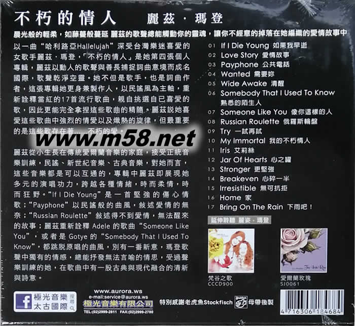 以一曲“哈利路亞Hallelujah”深受樂迷喜愛的女歌手麗茲.瑪?shù)牵覆恍嗟那槿恕故撬谒膹垈€(gè)人專輯,麗茲以動(dòng)人的歌聲與善長捕捉詞曲意境而成名國際,歌聲乾凈空靈。她不但是歌手,也是詞曲作者,這張專輯她更身兼製作人,以民謠風(fēng)為主軸,重新詮釋當(dāng)紅的17首流行歌曲,親自挑選自已喜愛的歌,因此更能完全拿捏這些歌曲的精隨。麗茲說她喜愛這些歌曲中強(qiáng)烈的情愛以及熾熱的旋律,但最重要的是這些歌存在著......不朽的愛。 麗茲從小生長在傳統(tǒng)愛爾蘭音樂的家庭,接受正統(tǒng)音樂訓(xùn)練,民謠、新世紀(jì)音樂、古典音樂,對(duì)她而言,這些音樂都是可以互通的,專輯中麗茲即展現(xiàn)她多元的演唱功力,跨越各種情緒,時(shí)而柔情,時(shí)而狂野。“If I Die Young”是一首堅(jiān)強(qiáng)的傷心情歌;“Payphone”以民謠般的曲風(fēng),敘述愛情的無奈;“Russian Roulette”敘述得不到愛情,無法醒來的故事;麗茲重新詮釋Adele的歌曲“Someone Like You”,或者是Gotye的“Somebody That I Used To Know”,都跳脫原唱的曲風(fēng),別有一番新意,瑪?shù)歉杪曋歇?dú)有的情感,總能抒發(fā)無法言喻的情思,受過聲樂訓(xùn)練的她,在歌曲中有一股古典與現(xiàn)代融合的清新與詩意。