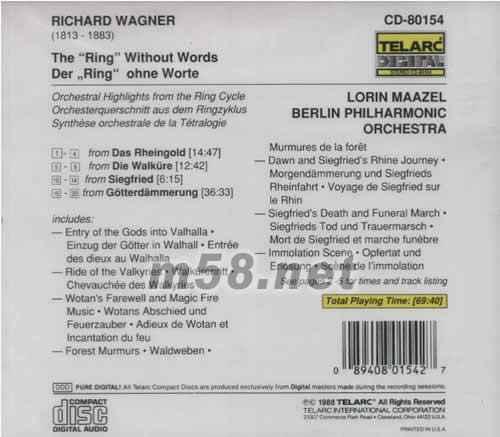洛林·馬澤爾 - 瓦格納:無言的指環(huán)THE RING WITHOUT WORDS專輯背面圖片