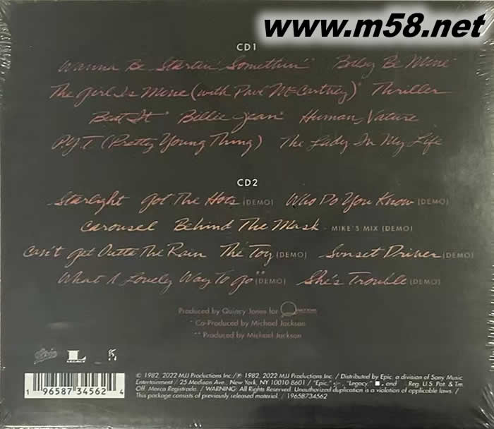 在這套全新的 Thriller 40 周年紀念 2CD 套裝中體驗世界上銷量超過 1 億的最暢銷專輯“和第一張被 RIAA 認證為三鉆的專輯”