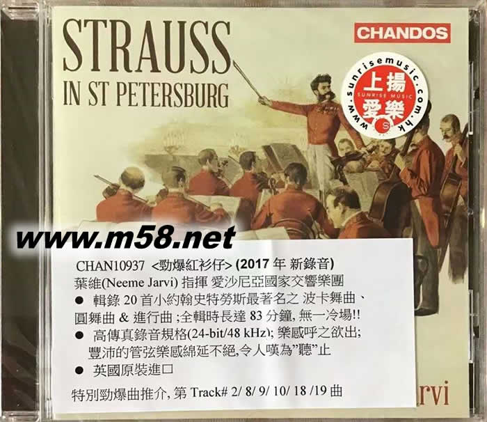 Strauss In St Petersburg 斯特勞斯在圣彼得堡( 紅衫仔)劉漢盛推介(m58.net) 指揮:NEEME JARVI 葉維(Neeme Jarvi) 指揮 愛沙尼亞國家交響樂團 輯錄20首小約翰史特勞斯最著名之 波卡舞曲、圓舞曲 & 進行曲 ;全輯時長達83分鐘, 無一冷場!! 高傳真錄音規格(24-bit/48 kHz); 樂感呼之欲出; 豐沛的管弦樂感綿延不絕,令人嘆為 "聽"止 英國原裝進口 特別勁爆曲推介, 第Track# 2/ 8/ 9/ 10/ 18 /19曲