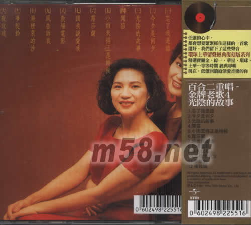 金牌老歌4 光陰的故事 [經典復刻版](m58.net) 任誰的心中,都會想要緊緊抓信這樣的一首歌 還好,我們留下了這些聲音 環球上華留聲經典復刻版系列 精選寶麗金\綜一\華星\環球\上華...等等時期經典專輯 現在\低價回潰給深愛音樂的你