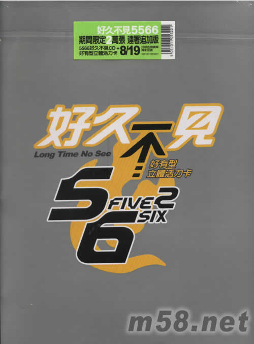 價格為估,以實到貨為準! 好久不見(臺灣預購第二版)(m58.net) 此產品長*寬=29*21CM 期間限定2萬張 連署追加版 5566好久不見CD+好有型立體活力卡 持綠色預購單獨家領取 音樂無障礙 天團無距離 環抱新世界觀10首全主打 新東方節奏踢踏[好久不見] 英倫的真摯抒情[白色花漾] 美式超華麗搖滾[偷心 Yes I Love You] 義國的深刻浪漫[回到我身邊-山塔露琪亞] 特別推薦 5566+太極 師兄弟團龍之精神大合唱[同一個世界] 西洋經典重新詮釋[Crying In The Rain]