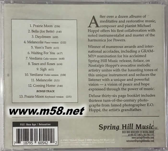 口琴懷舊浪漫曲Nostalgie Romances for Harmonica(m58.net) MICHAEL HOPPE 邁克爾·霍普出生于英國(guó),享譽(yù)世界的音樂(lè)家和作曲家。他的音樂(lè)作品跨越多種風(fēng)格,包括古典音樂(lè)、電子音樂(lè)、環(huán)境音樂(lè)和電影配樂(lè)。 邁克爾·霍普以他獨(dú)特的創(chuàng)作風(fēng)格和深情的音樂(lè)作品在音樂(lè)界取得了巨大的成就。他的音樂(lè)作品為人們帶來(lái)了寧?kù)o和慰藉,他的音樂(lè)承載著情感和靈性,深深觸動(dòng)著人們的心靈。 《Nostalgie Romances for Harmonica 口琴懷舊浪漫曲》是一張為口琴而編曲的音樂(lè)專輯。這張專輯充滿了懷舊和浪漫的情感,將經(jīng)典的浪漫曲調(diào)重新演繹成口琴的美妙旋律。 《Nostalgie Romances for Harmonica》適合那些熱愛(ài)浪漫音樂(lè)和口琴的人們。它不僅展現(xiàn)了口琴的魅力,還將經(jīng)典的浪漫曲目與口琴的演奏技巧相結(jié)合,創(chuàng)造出獨(dú)特而美妙的音樂(lè)體驗(yàn)。 如果你對(duì)懷舊和浪漫的音樂(lè)情懷有著濃厚的興趣,那么"Nostalgie Romances for Harmonica"將會(huì)是一張讓你陶醉其中的專輯。讓口琴的聲音帶你穿越時(shí)光,重溫那些美好而難忘的浪漫時(shí)刻。