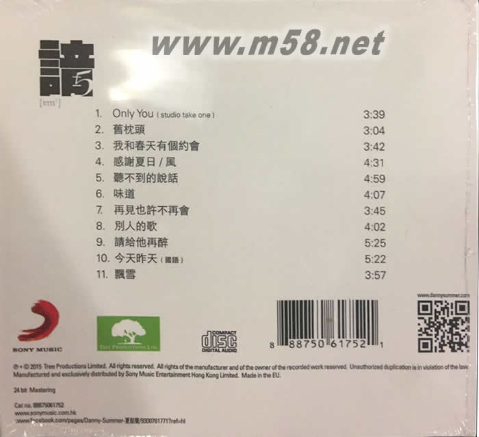 諳 5(m58.net) 夏韶聲 + [ 諳 ] 十多年來在本地及國內 "發燒音響" 界已成為一個殿堂唱片專集系列 [ 諳 5 ] 同樣地由 Danny 監製、Roel Garcia 的編曲、John Lin Hei 混音 這自 "諳 1" 至今的音樂鐵三角,得到樂迷及音響發燒羣口碑中再度合作 這一次更有專業音響兼結他手的 Enrest 劉賢德加入於提供錄音器材及提議高級專業音響器材之音頻數據,一起打造這己建立於大家心中的 "諳" 系列延續 ----- [ 諳 5 ]。 為求音色更完美母帶特別運往美國混音首批CD限量歐洲壓碟 配合HiFi書及強勁店舖擺設宣傳 24bit數碼錄製最高音質CD發燒上市
